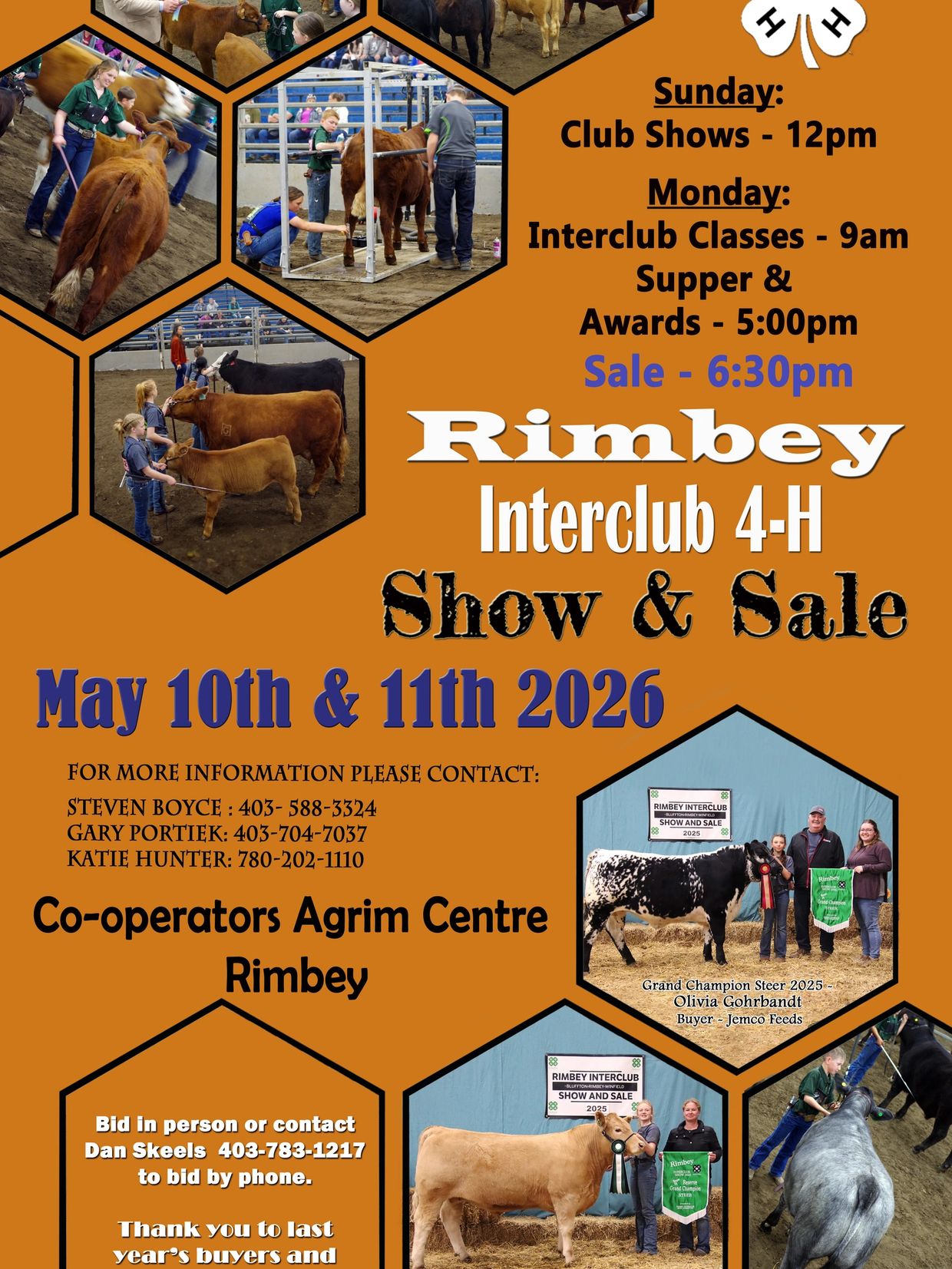 Rimbey Agrium Club Show May 10, 2026 Inter-club Show & Sale May 11, 2026 14 Steers!